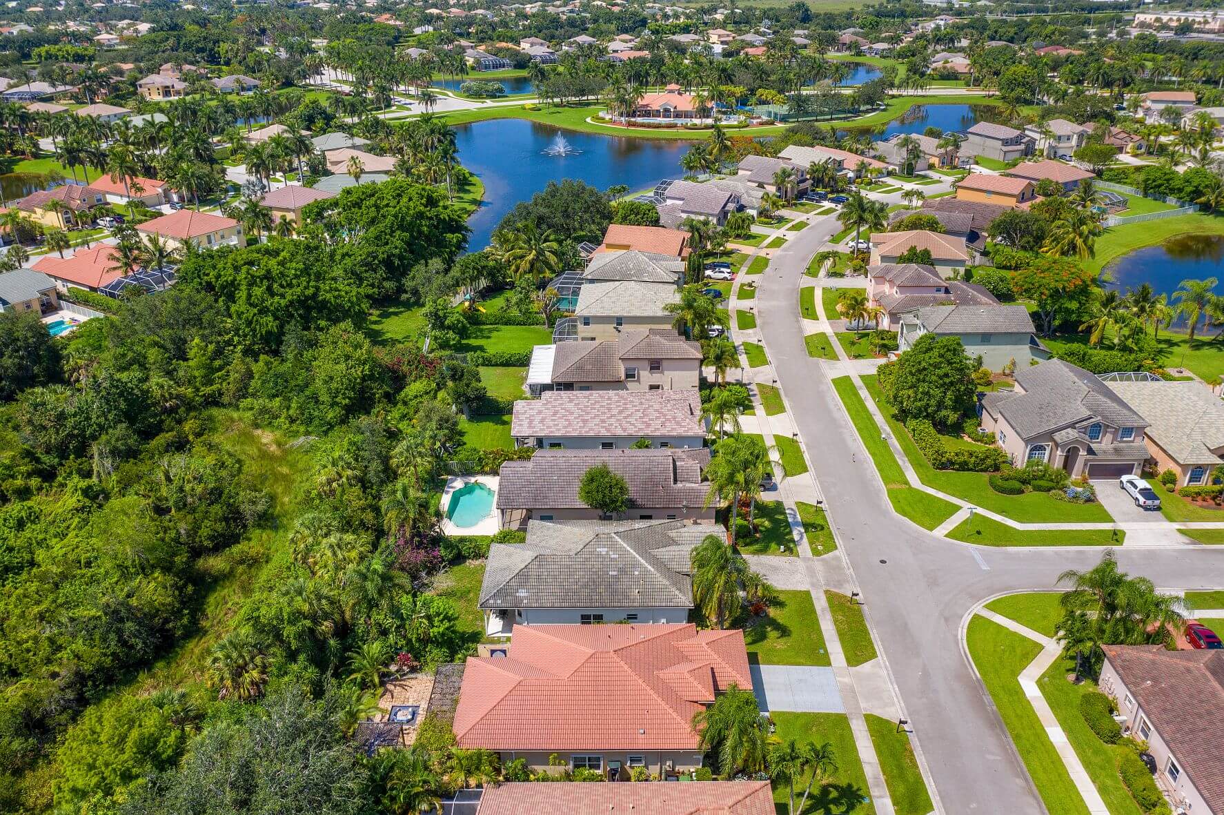 - Sidewalks, lakes, and green spaces throughout the neighborhood
